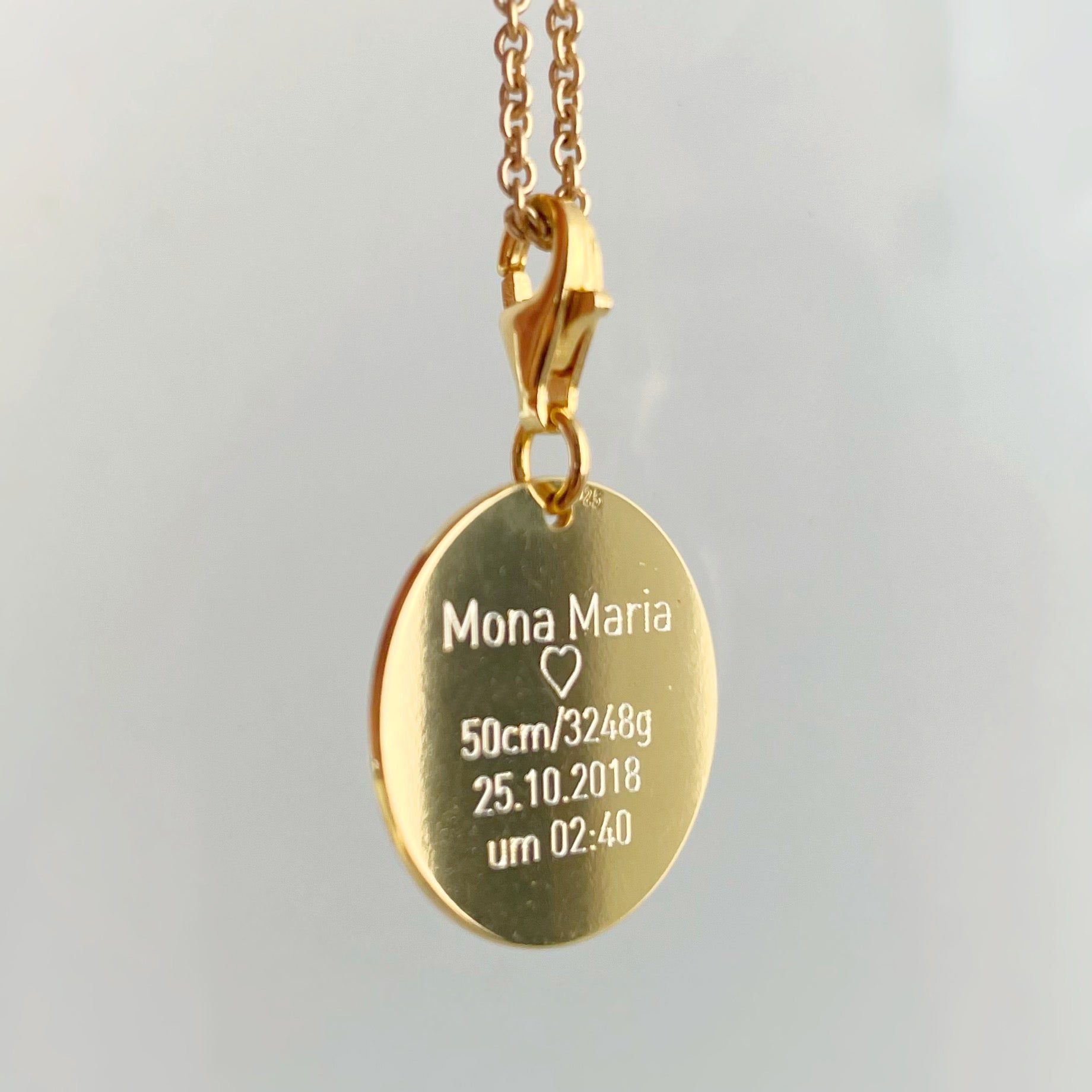 The most personal pendant for you and your loved ones. The plates are engravable on both sides and through the carabiner you can hang the pendant on any chain that is up to 2mm wide. No matter whether a picture of your partner, child or a beloved pet. Your chain pendant is completely individually engravable. Through the individual engraving it is not just a pendant, but a piece of jewelry with emotional value and a real eye-catcher.